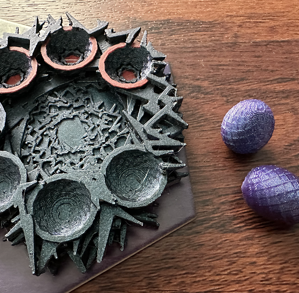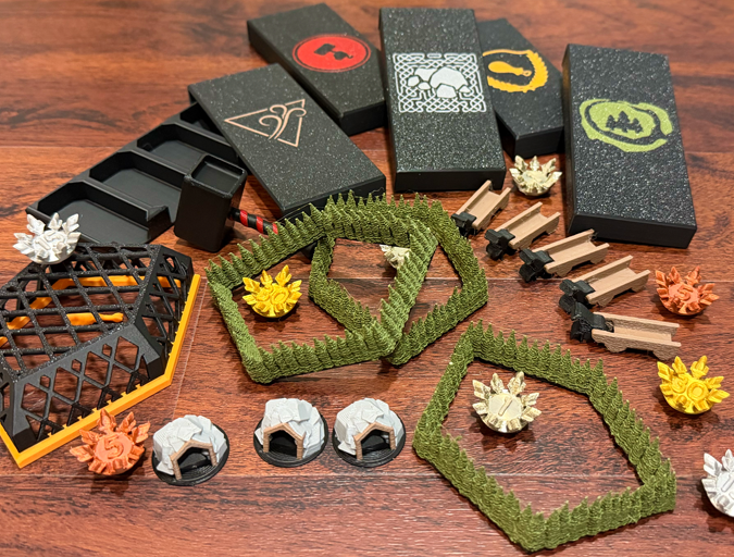 We have a new custom 3D printed upgrade for Alynthia this year! Now each advanced guild ability has an upgrade, that allows your unique power to shine. The Mountain guild has tunnel entrances, the Forest guild gets walls, the Nomads get horse drawn outpost wagons, the Labor guild get’s a hammer labor die pedestal, and the Field guild gets a dragon trap (complete with turkey leg as bait).